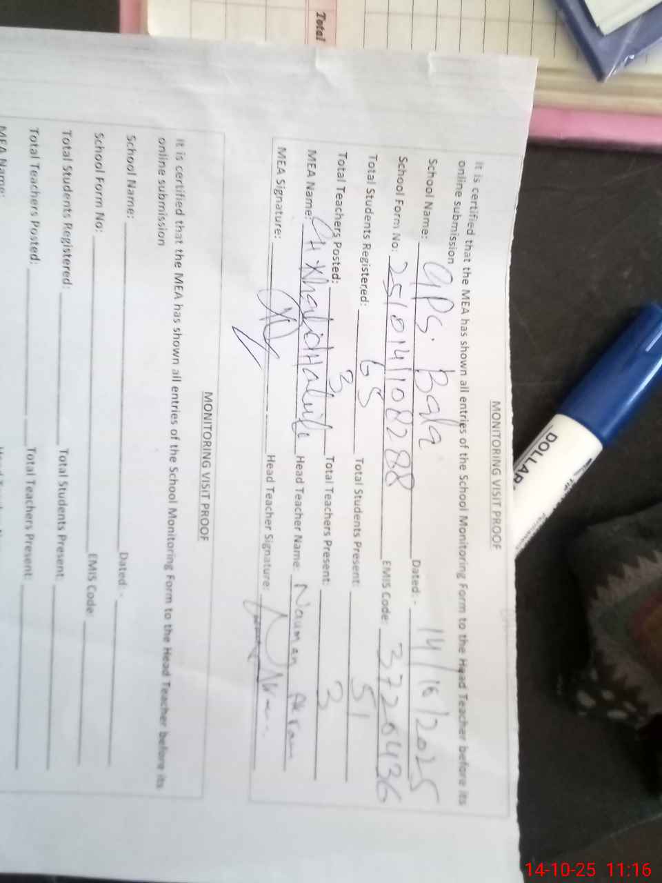 | Certified that this School was Inspected by the Undersigned MEA/DMO Today and the Information Stated Above is as Per Record. | |||||