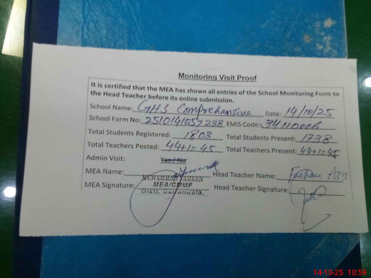 | EMIS Code: 34110006 | Name of School: GHS COMPREHENSIVE GUJRANWALA | |||