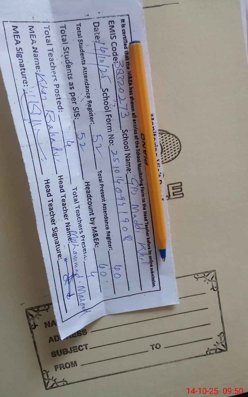 | EMIS Code: 38320273 | Name of School: GPS MADDI KHEL | |||