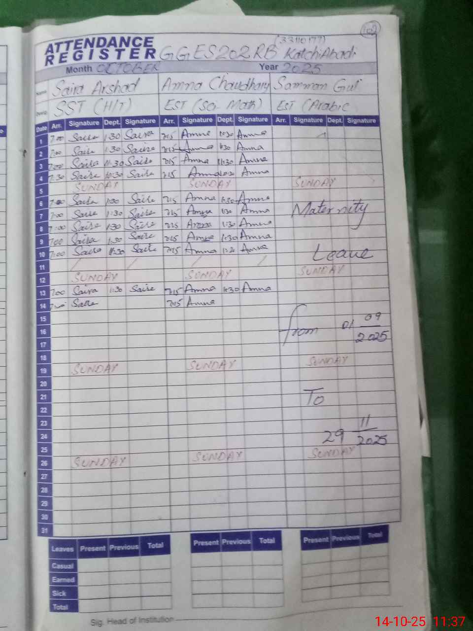 | 33**** | Su**** Gu**** | Regular | 30 | 0 | 0 | 30 | 0 | 0 | 0 | 0 | 0 | Maternity | |
