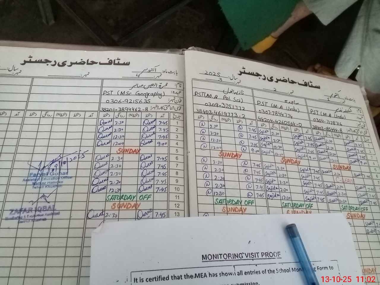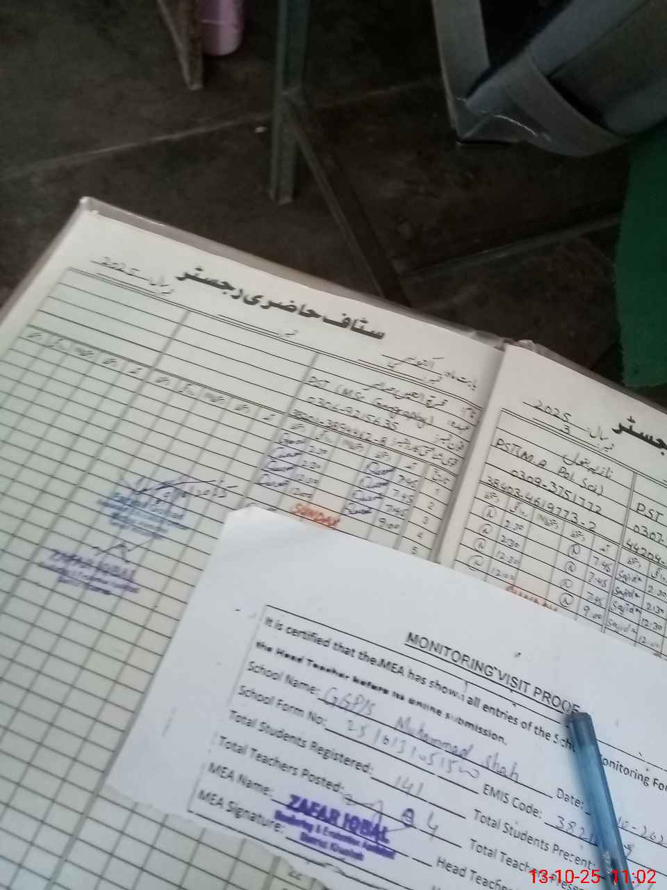 | Attendance Register | Head Teacher | MEA with School | Visit Proof |