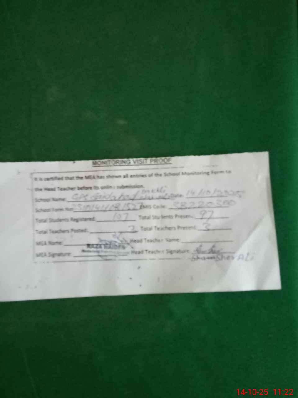 | Certified that this School was Inspected by the Undersigned MEA/DMO Today and the Information Stated Above is as Per Record. | |||||