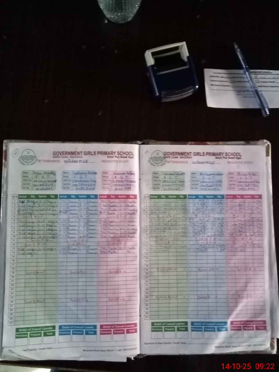 | CNIC | Full Name | Designation | R/C | Absence During Last Calender Month |