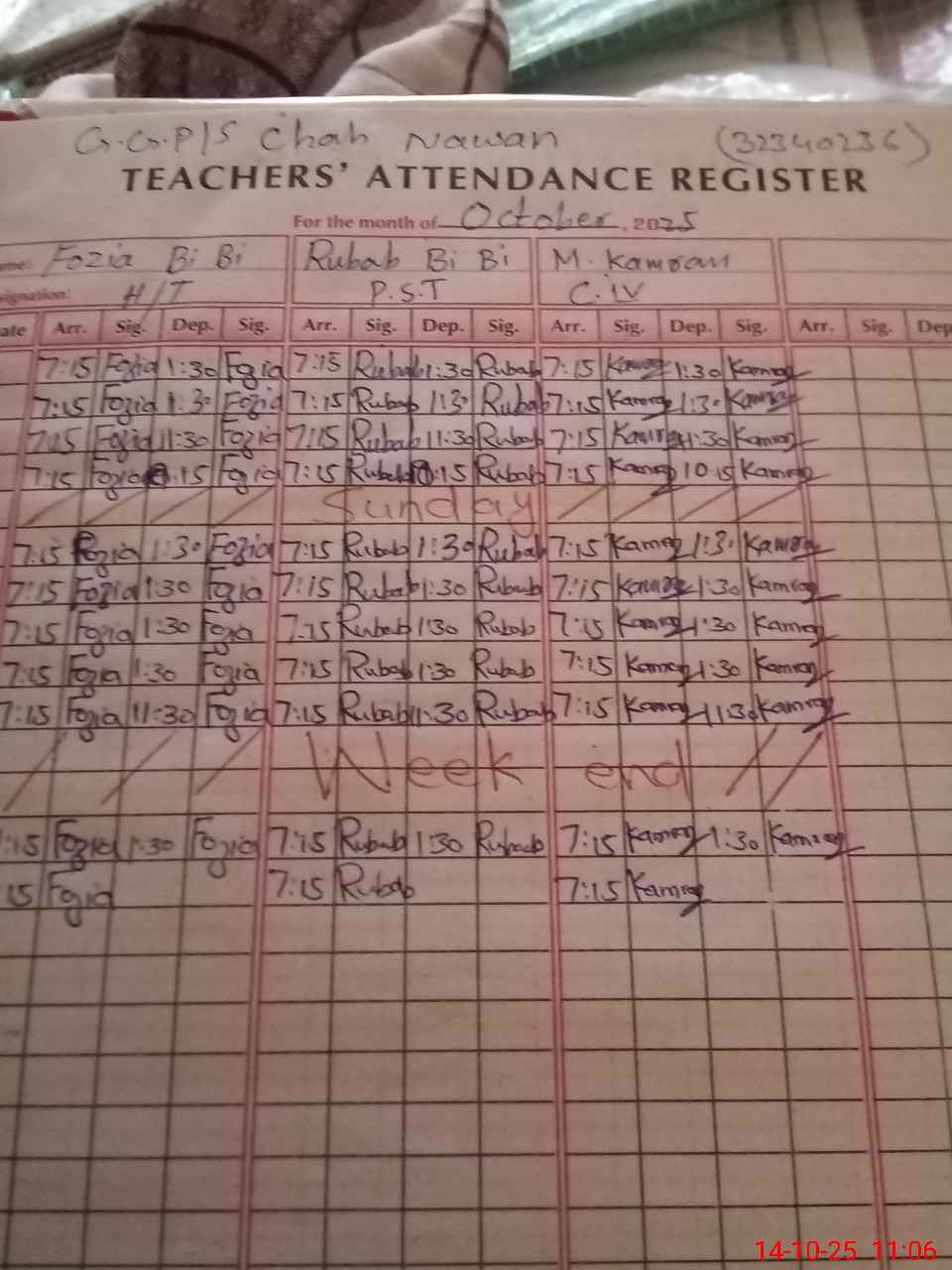 | CNIC | Full Name | Designation | R/C | Absence during last cal. month |