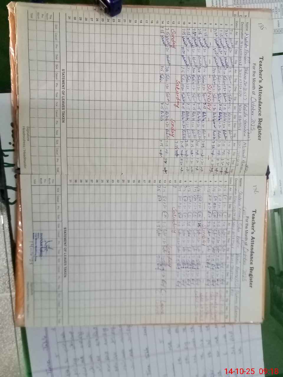 | Monitoring Date: 14-10-2025 | Start Time: 14-10-2025 09:16 AM | End Time: 14-10-2025 09:51 AM | Name of MEA: SH**** AH**** | |