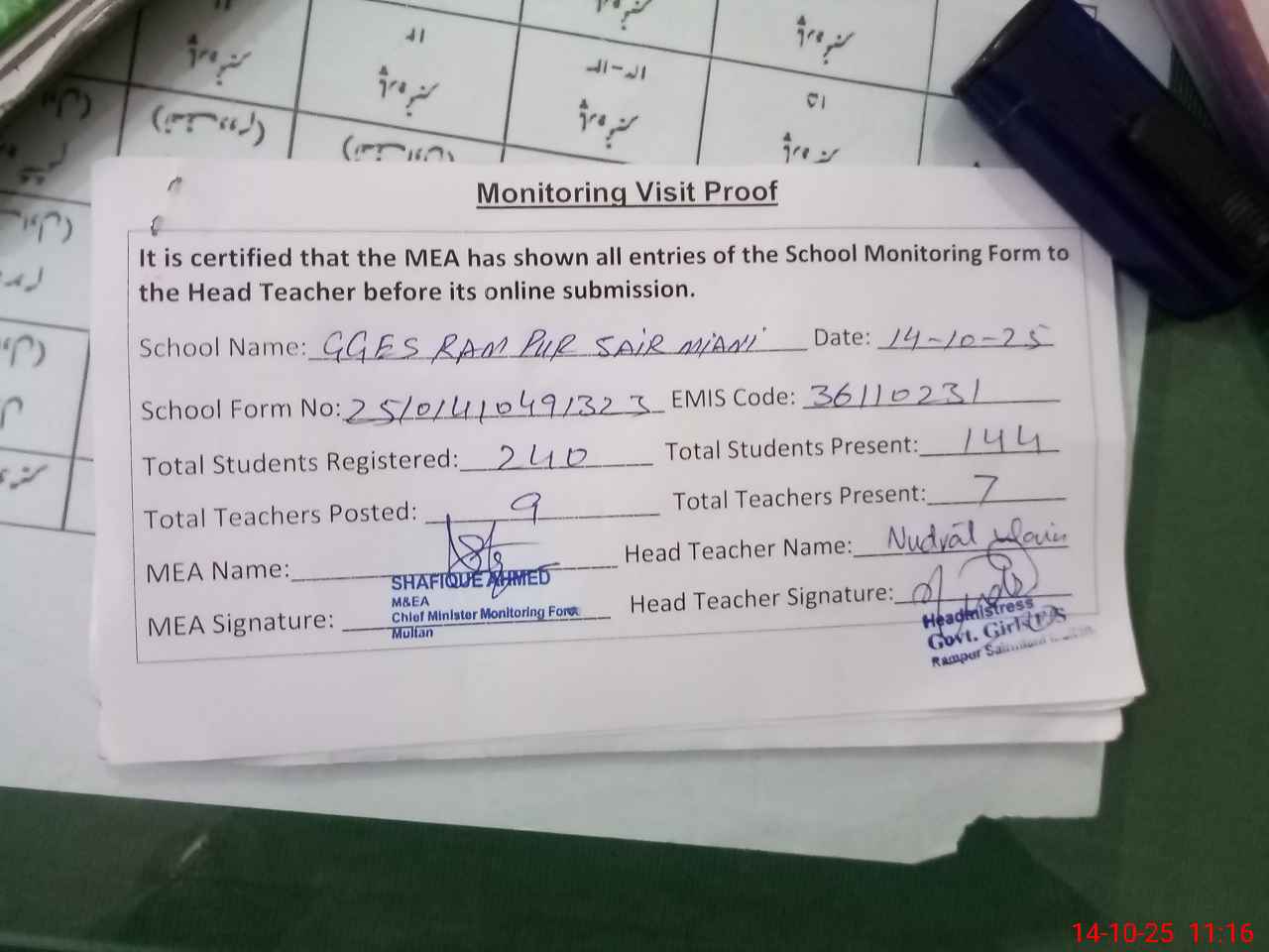 | EMIS Code: 36110231 | Name of School: GGES RAM PUR SAIR MIANI MULTAN | |||