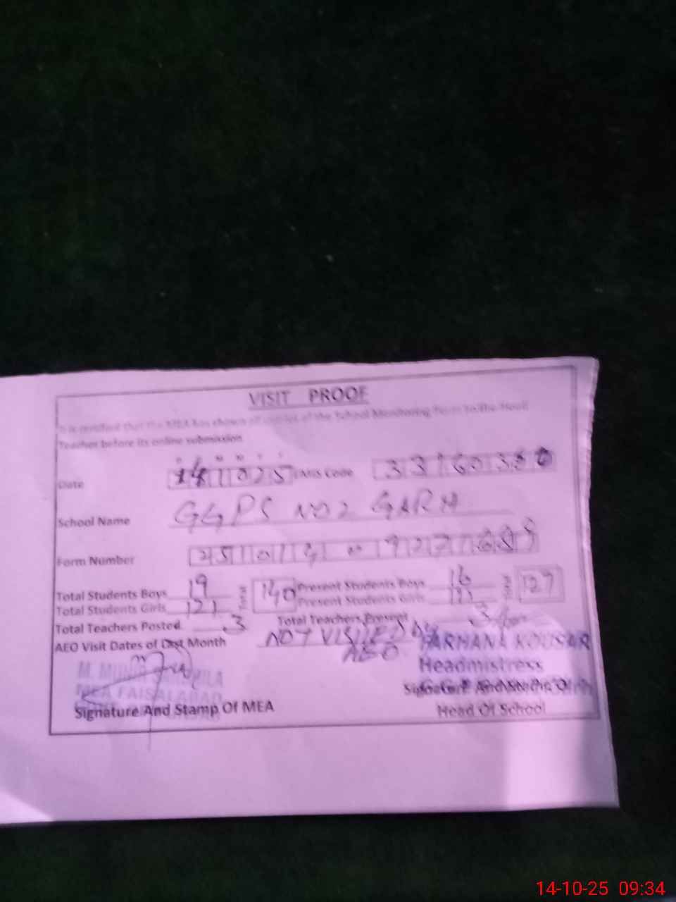 | EMIS Code: 33160360 | Name of School: GGPS NO.2 GARH | |||