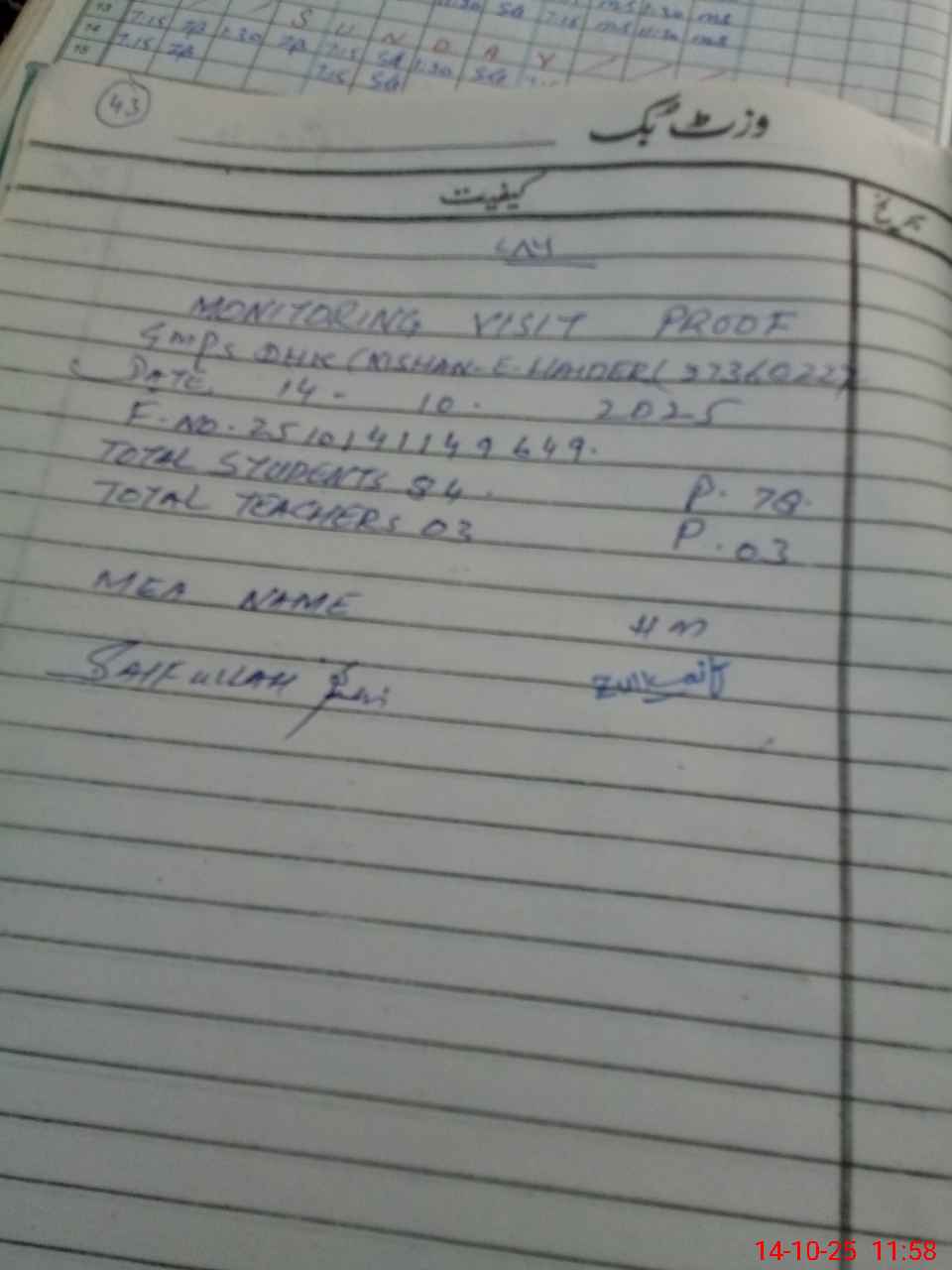 | EMIS Code: 37360227 | Name of School: GMPS DHOK NISHAN-E-HAIDER | |||