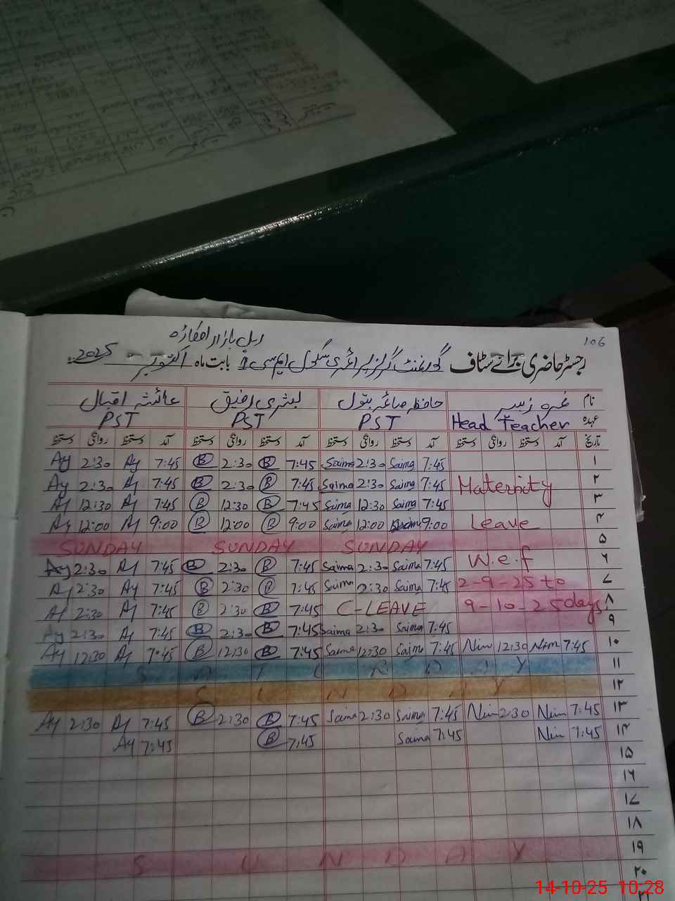 | Leave | Duty | Absent | Maternity | Medical | Ex- Pak |
