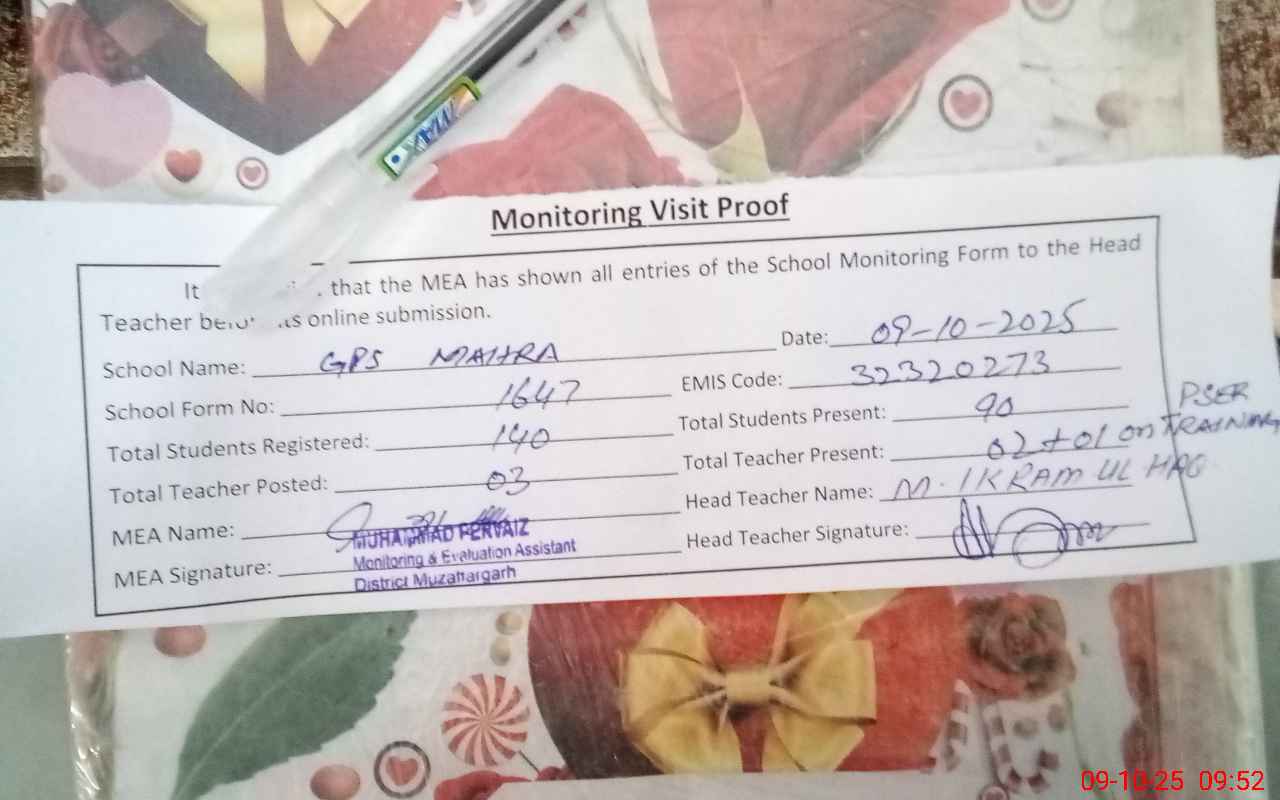| EMIS Code: 32320273 | Name of School: GPS MAHRA | |||