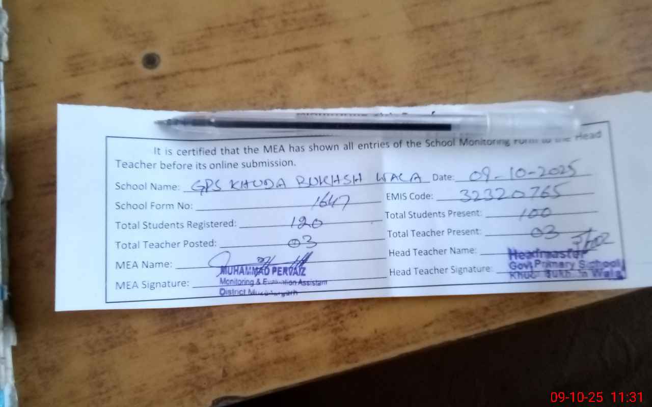 | EMIS Code: 32320765 | Name of School: GPS KHUDA BAKHSH WALA | |||