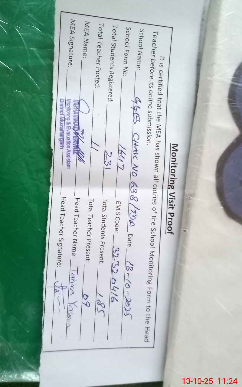 | EMIS Code: 32320416 | Name of School: GGES CHAK NO. 638 TDA | |||