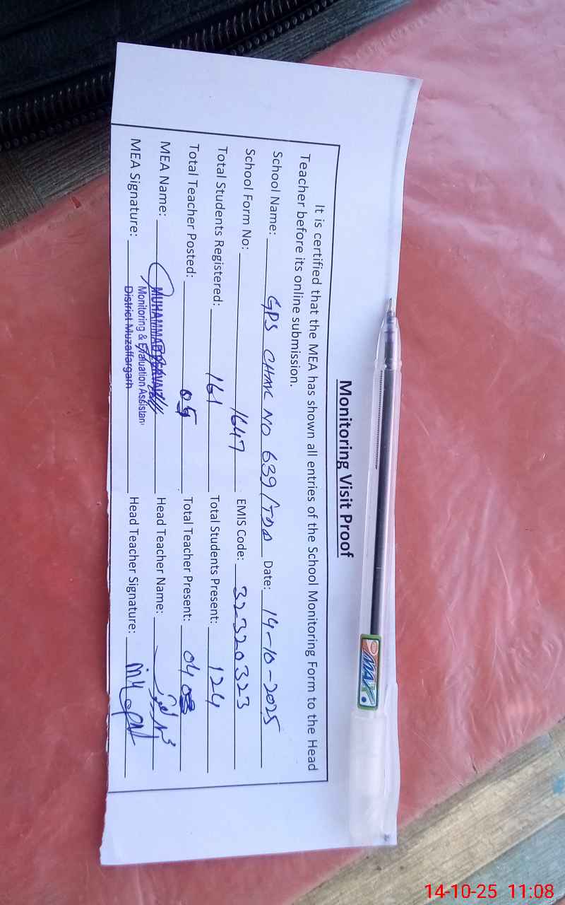 | EMIS Code: 32320323 | Name of School: GPS CHAK NO.639 TDA | |||