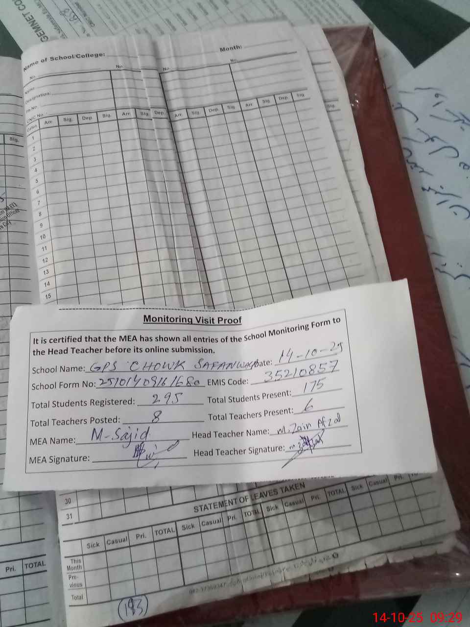 | EMIS Code: 35210857 | Name of School: GPS CHOWK SAFANWALA (EX-MCL) | |||