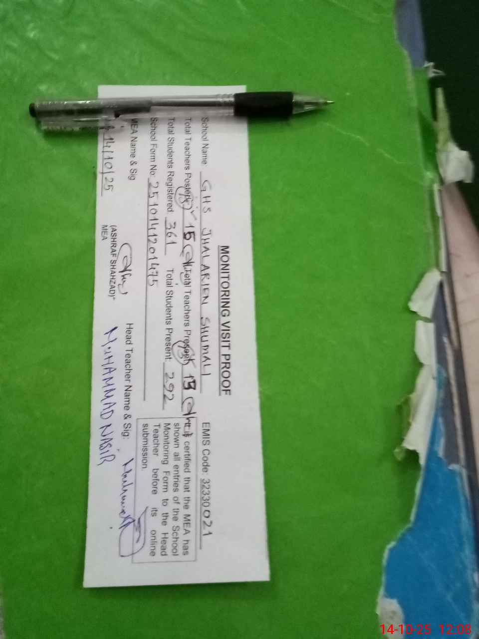 | EMIS Code: 32330021 | Name of School: GHS JHALRAIN SHUMALI | |||
