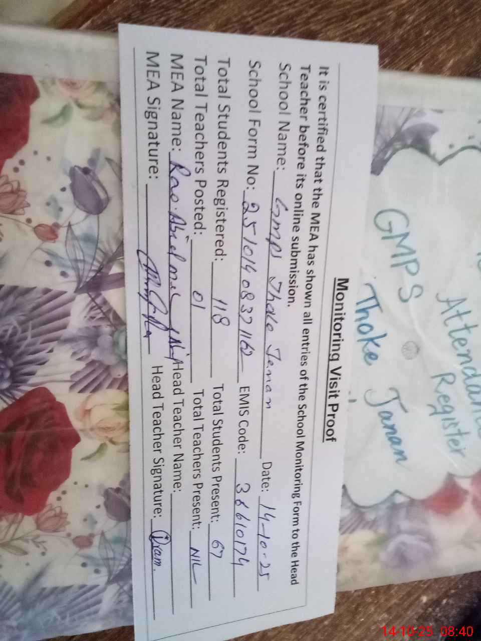 | EMIS Code: 36610174 | Name of School: GMPS JHOKE JANAN | |||
