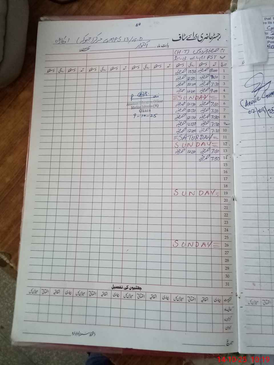 | CNIC | Full Name | Designation | R/C | Absence During Last Calender Month |