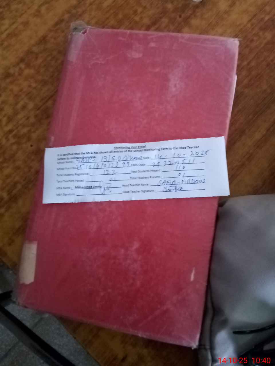 | Attendance Register | Head Teacher | MEA with School | Visit Proof |