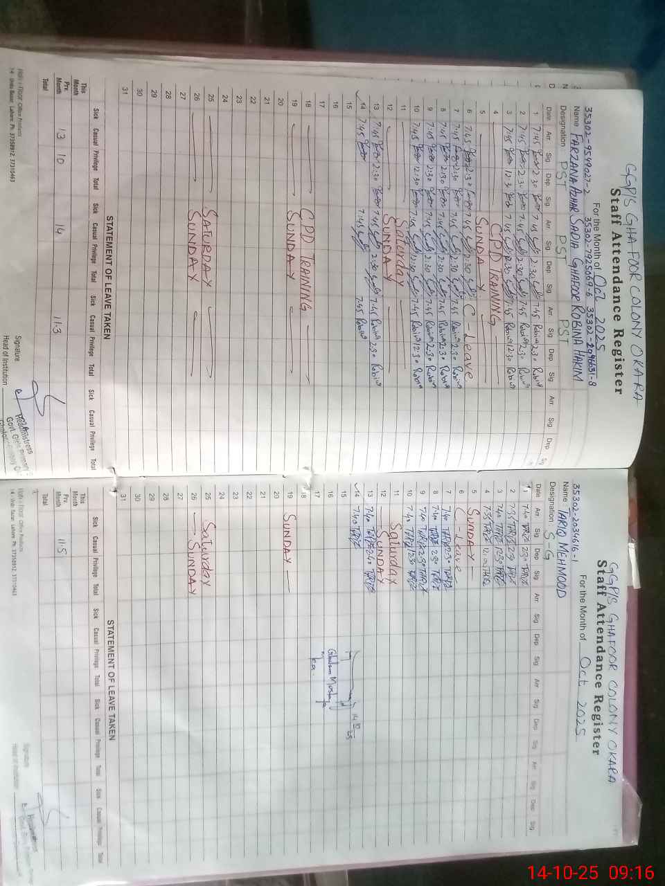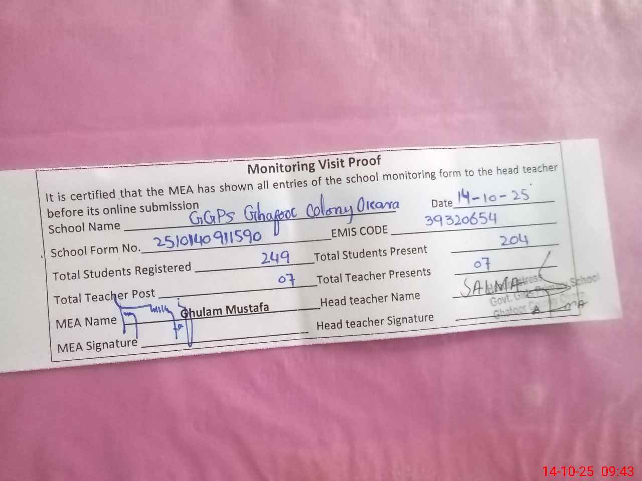 | EMIS Code: 39320654 | Name of School: GGPS GHAFOOR COLONY OKARA | |||
