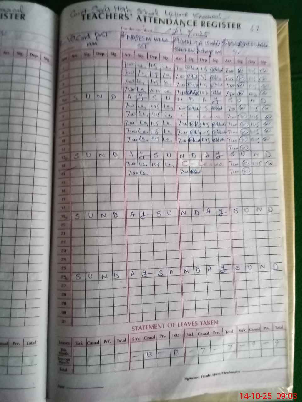 | Name: Kh**** Is**** Designation: (School Headmaster's/Headmistress's) SSE (Bio Chem) Phone/Cell Number: 03**** |