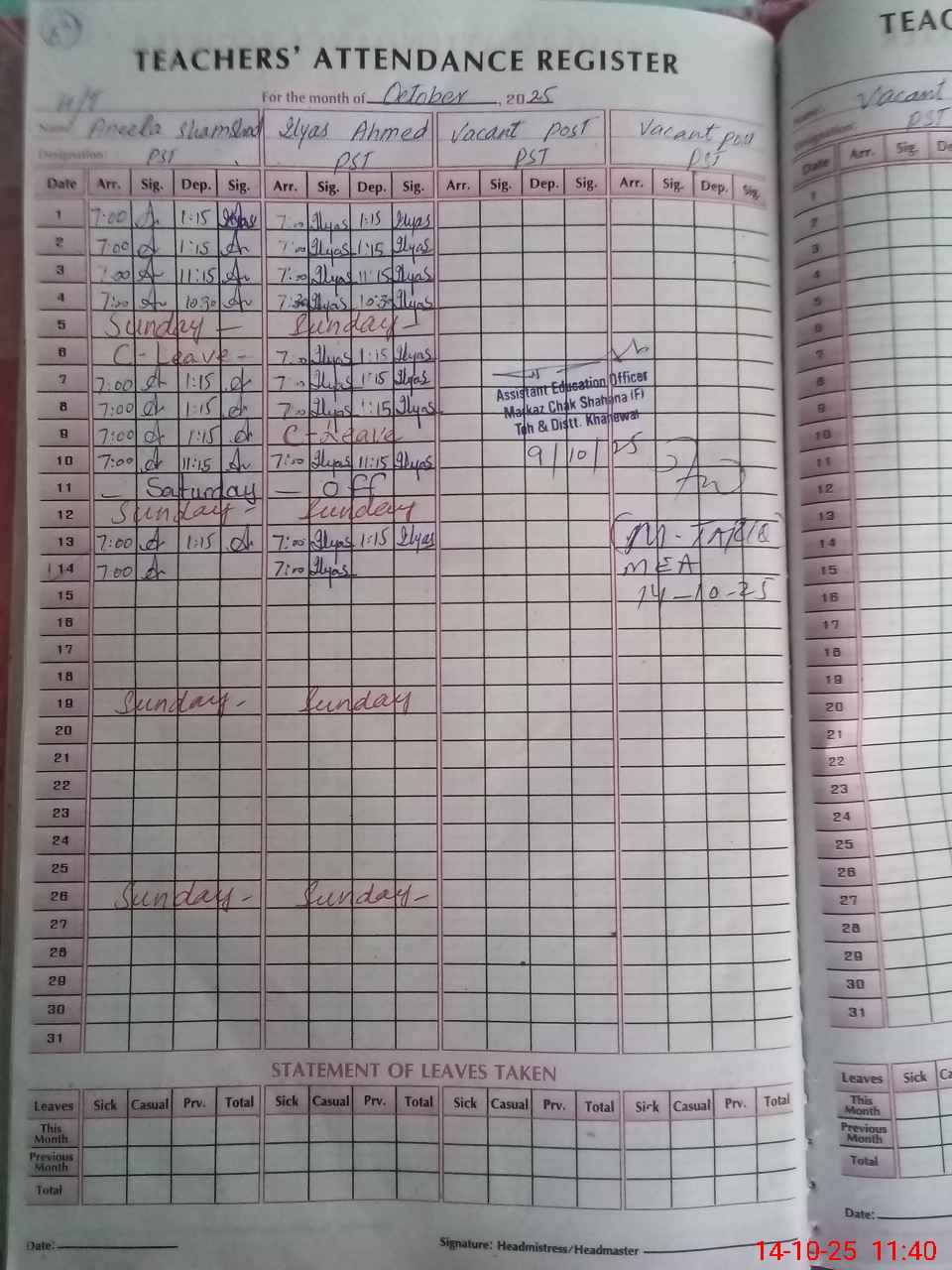 | Name: An**** Sh**** Designation: (School Headmaster's/Headmistress's) PST Phone/Cell Number: 03**** |