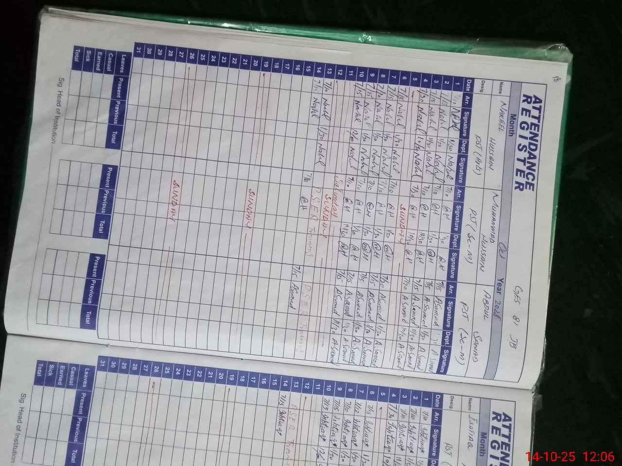 | CNIC | Full Name | Designation | R/C | Absence During Last Calender Month |