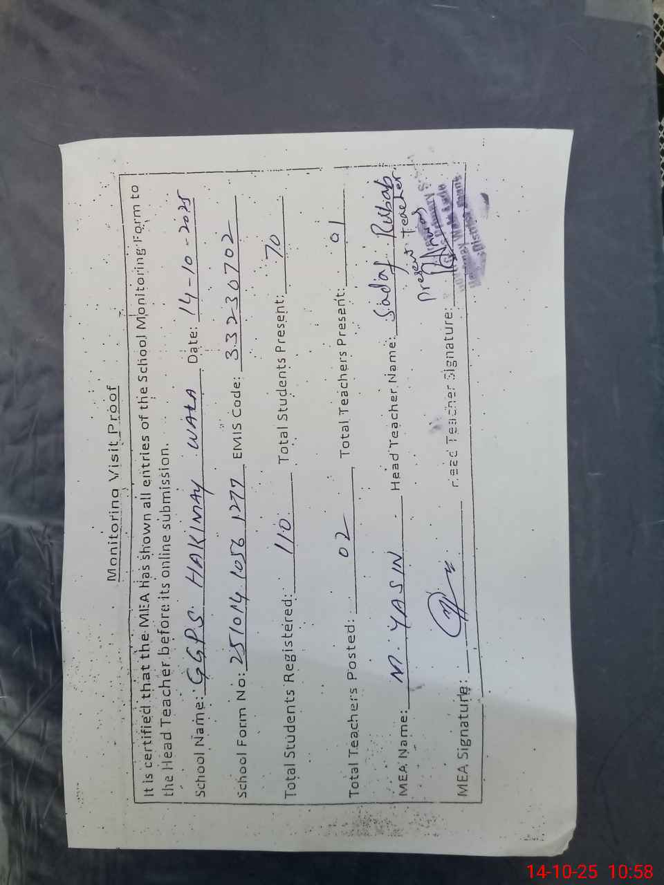 | EMIS Code: 33230702 | Name of School: GGPS HAKIMAY WALA | |||