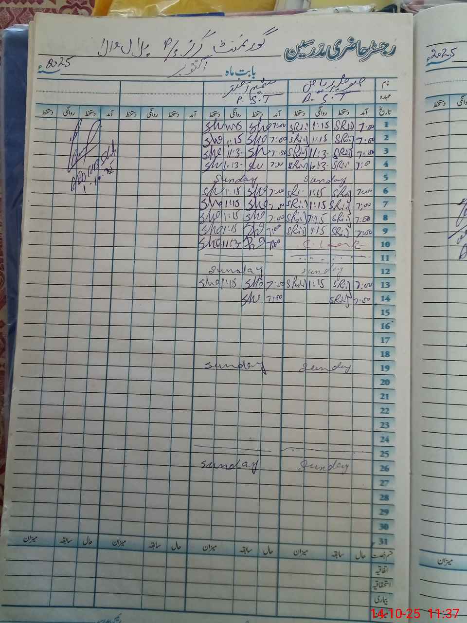 | CNIC | Full Name | Designation | R/C | Absence During Last Calender Month |