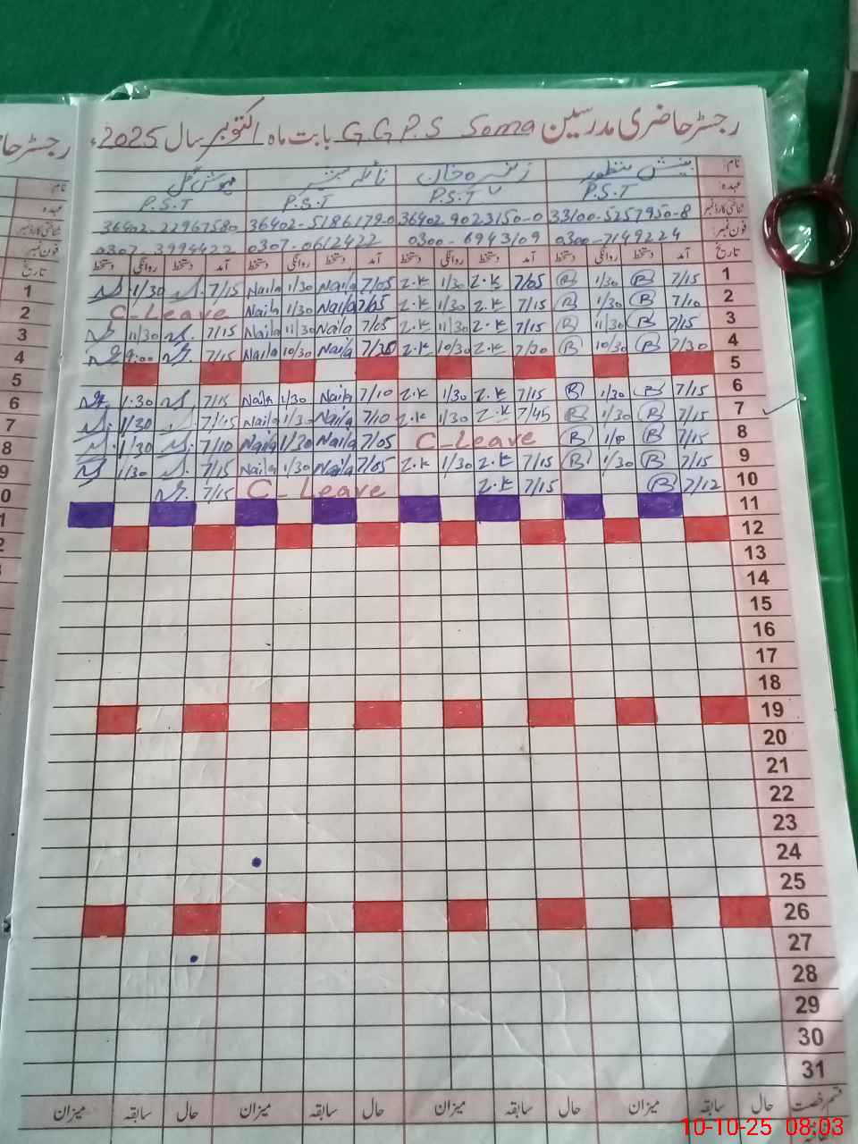 | Name: Zu**** Kh**** Designation: (School Headmaster's/Headmistress's) PST Phone/Cell Number: 03**** |