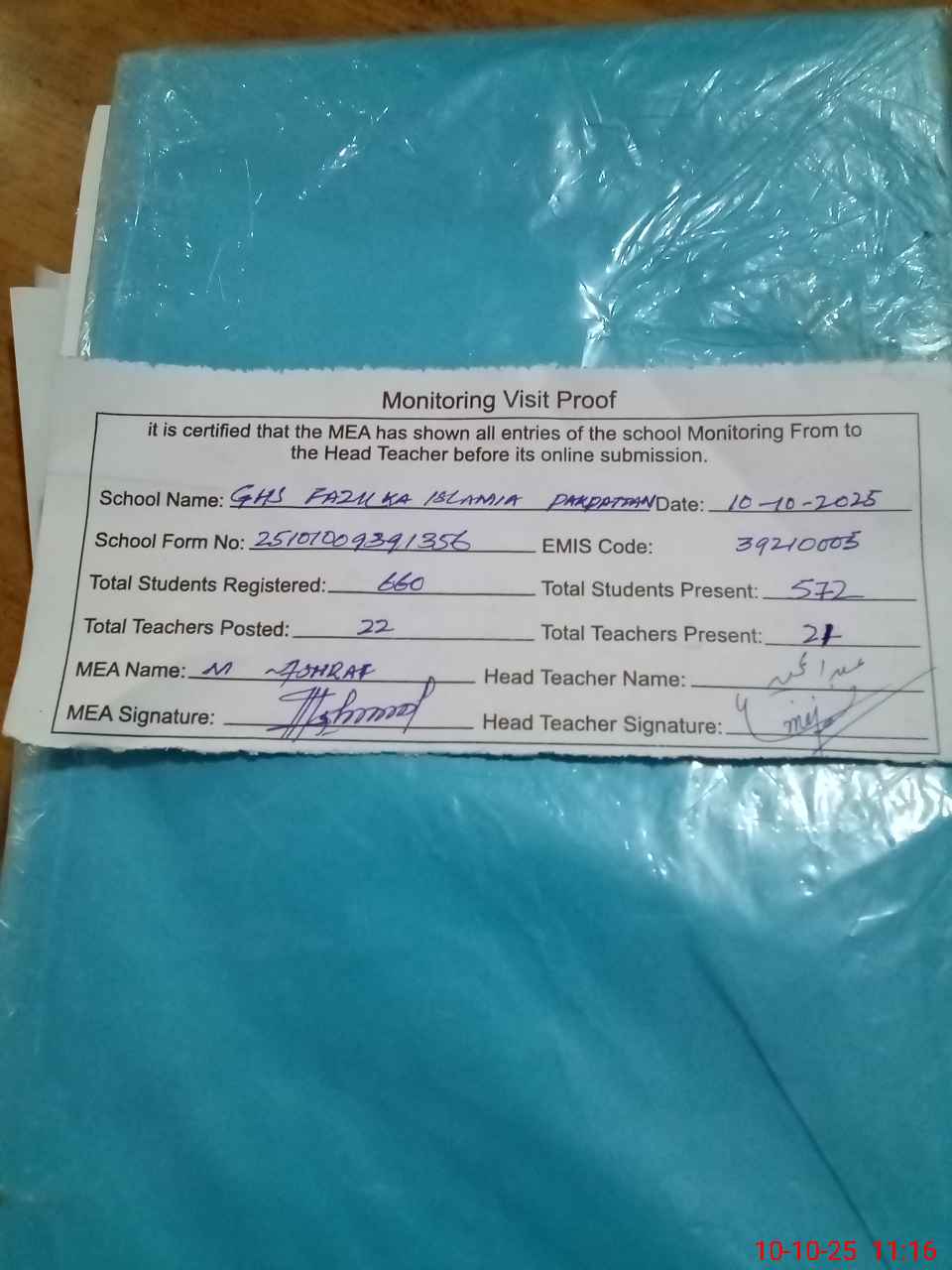 | EMIS Code: 39210005 | Name of School: GHS (MODEL) FAZILKA ISLAMIA PAKPATTAN | |||