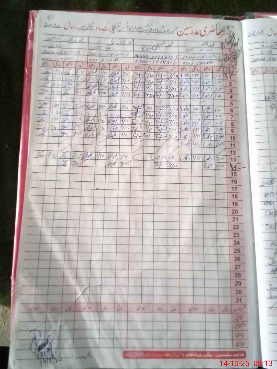| CNIC | Full Name | Designation | R/C | Absence During Last Calender Month |