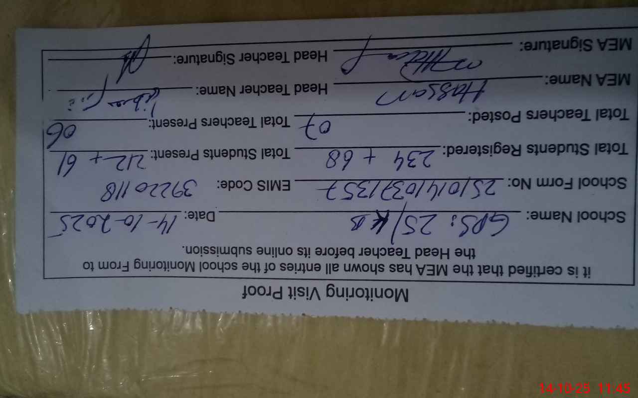 | EMIS Code: 39220118 | Name of School: GPS 25 KB | |||