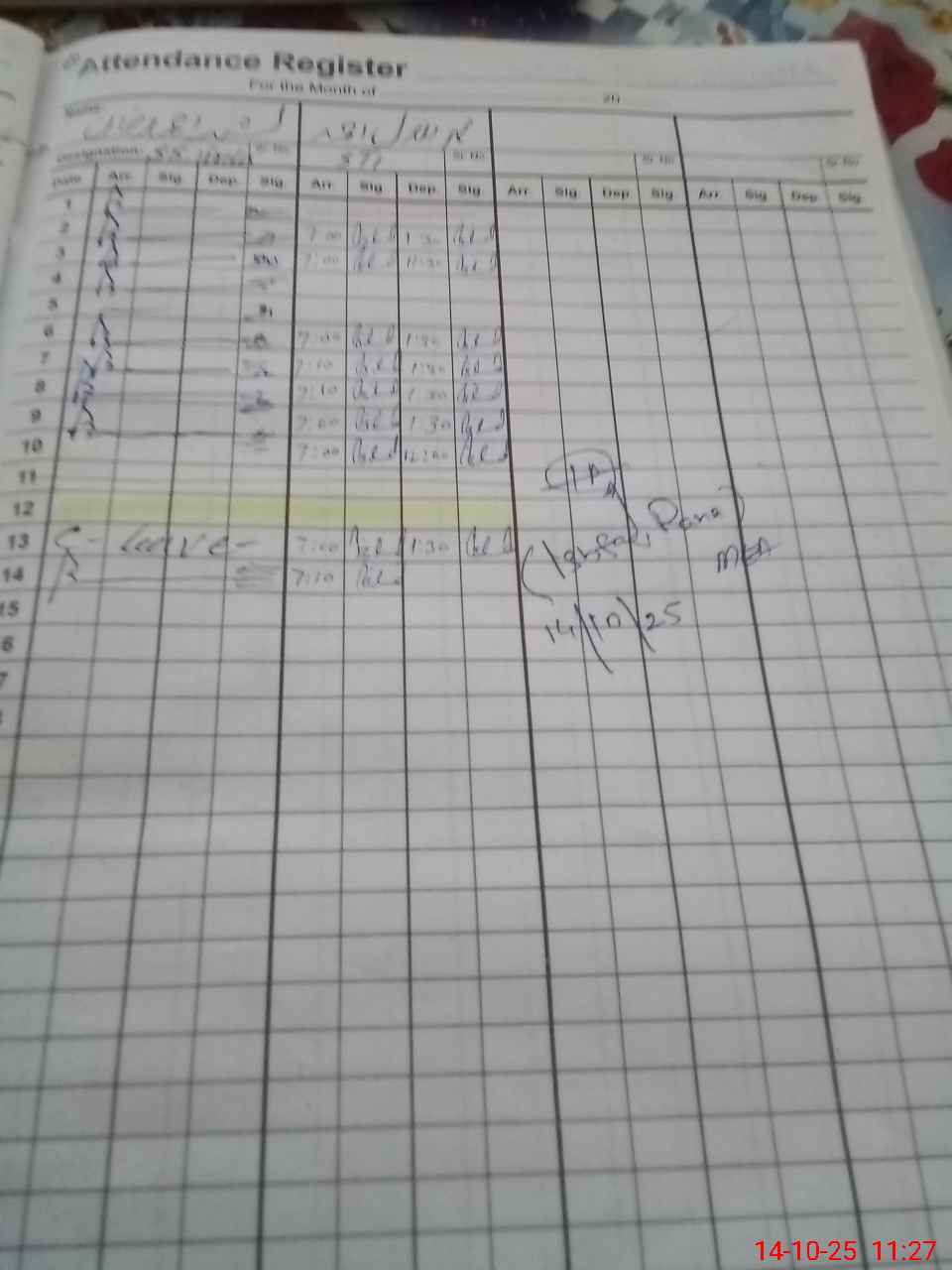 | CNIC | Full Name | Designation | R/C | Absence During Last Calender Month |