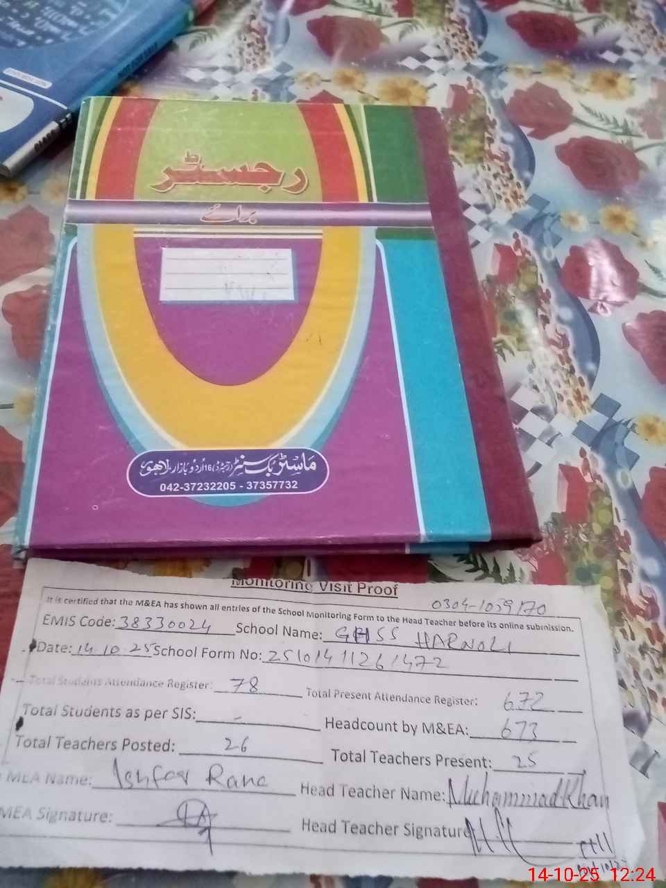 | Name: MU**** KH**** Designation: (School Headmaster's/Headmistress's) SS Phone/Cell Number: 03**** |