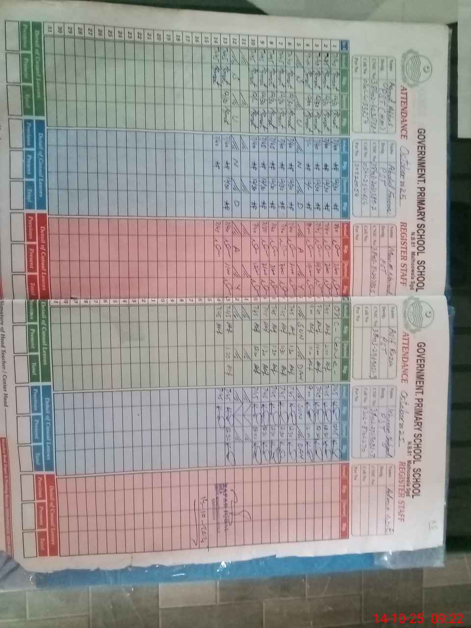 | CNIC | Full Name | Designation | R/C | Absence During Last Calender Month |