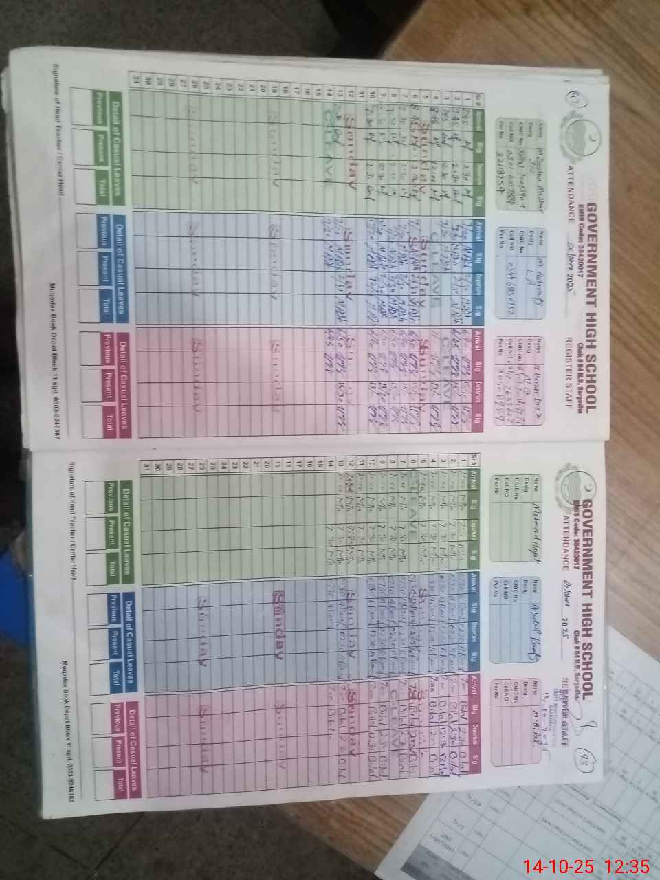 | CNIC | Full Name | Designation | R/C | Absence During Last Calender Month |