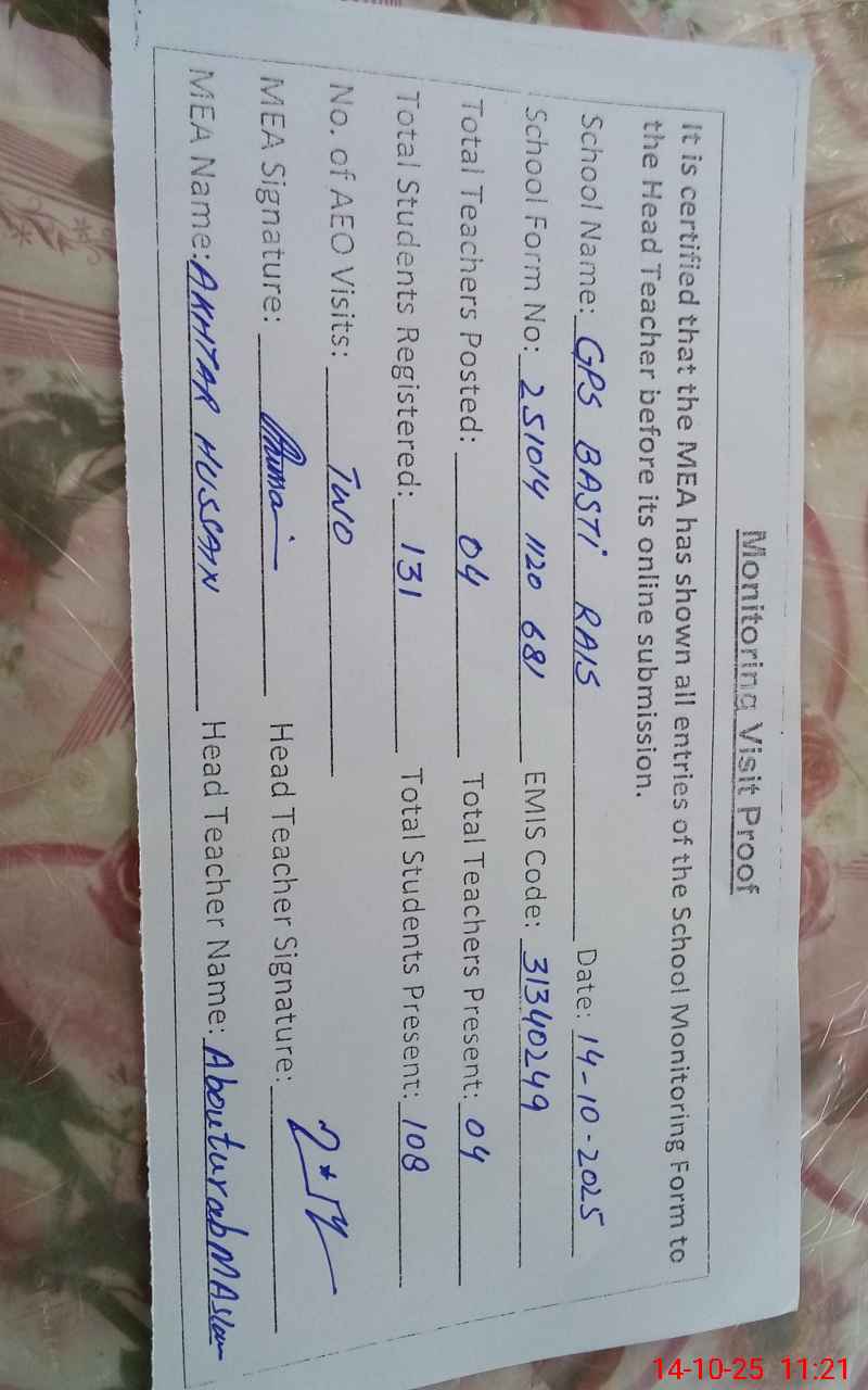 | EMIS Code: 31340249 | Name of School: GPS BASTI RAIS | |||