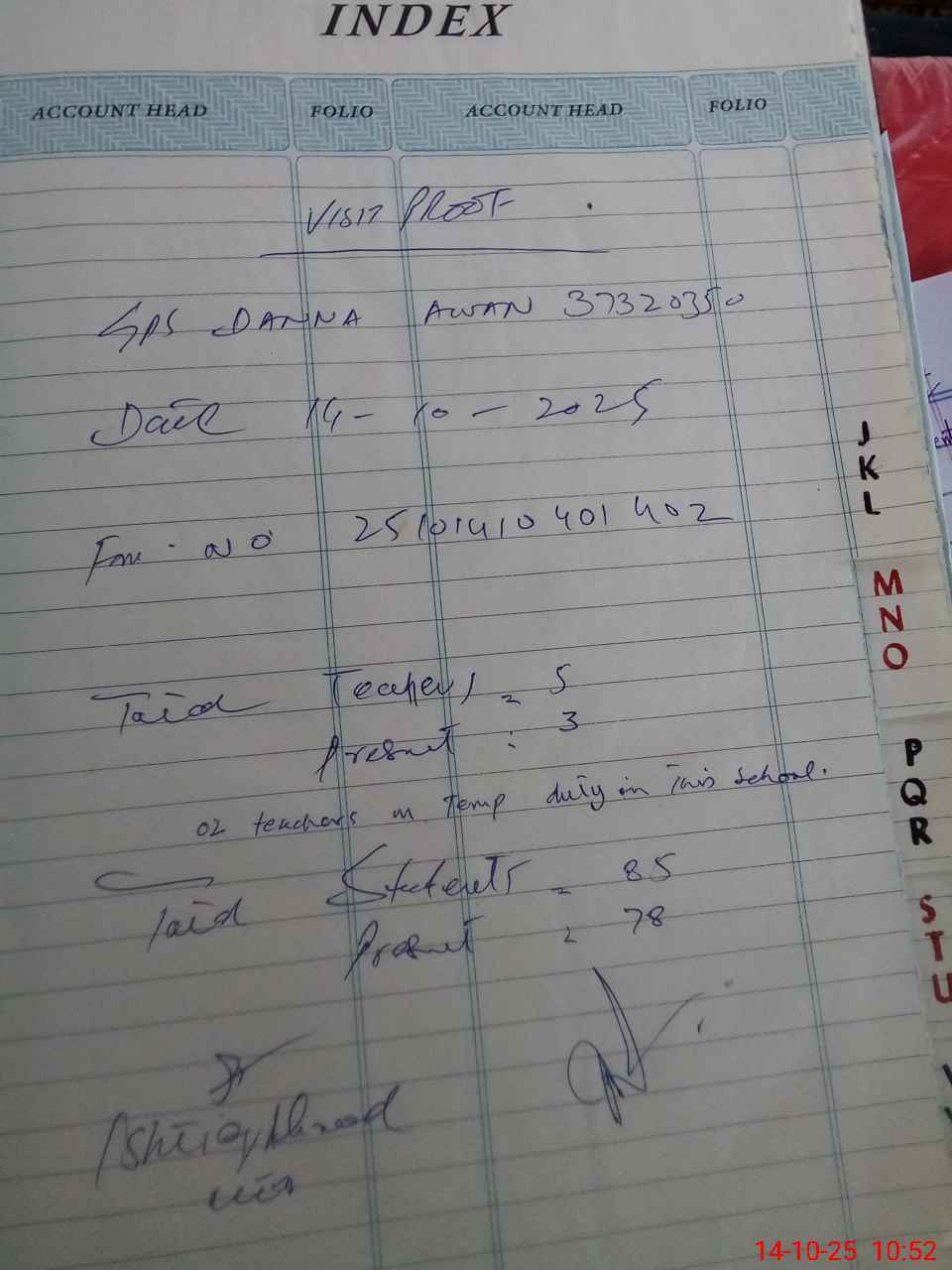 | Name: In**** ULHa**** Designation: (School Headmaster's/Headmistress's) PST Phone/Cell Number: 03**** |