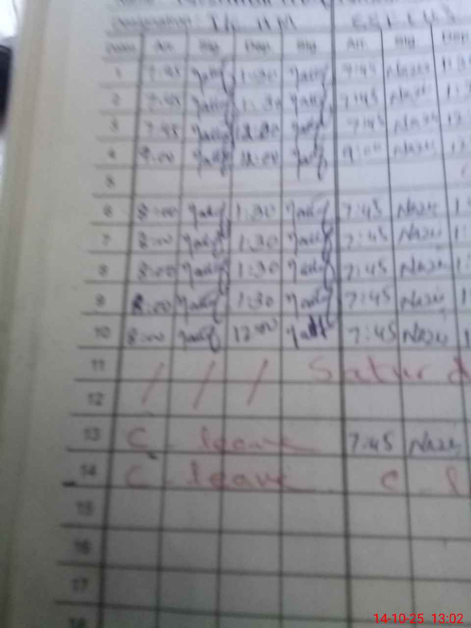 | 37**** | No**** Al**** | SST | Regular | 0 | 0 | 0 | 0 | 0 | 0 | 0 | 0 | 0 | Casual |