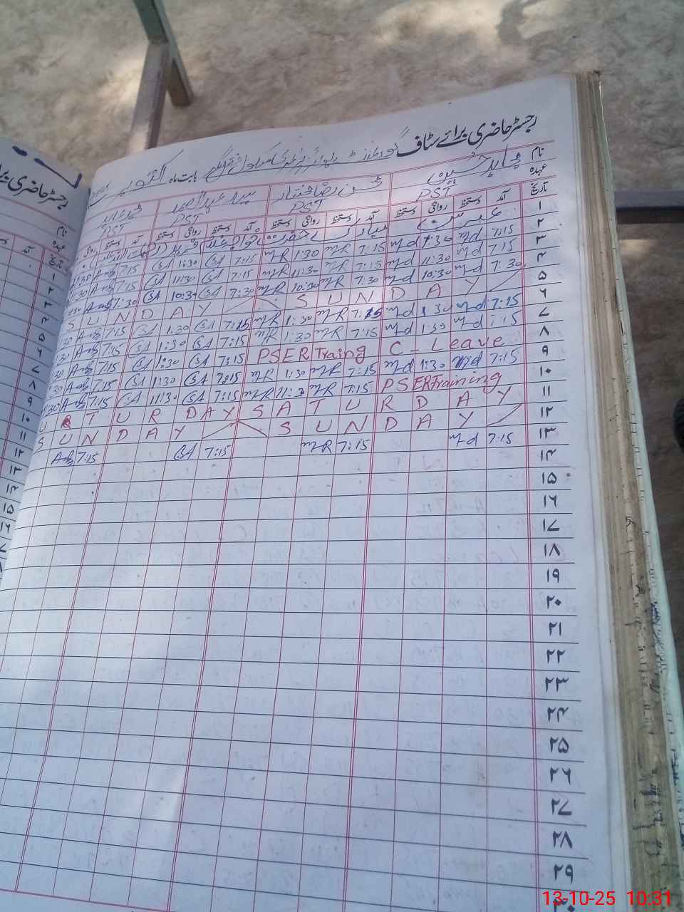 | Leave | Duty | Absent | Maternity | Medical | Ex- Pak |