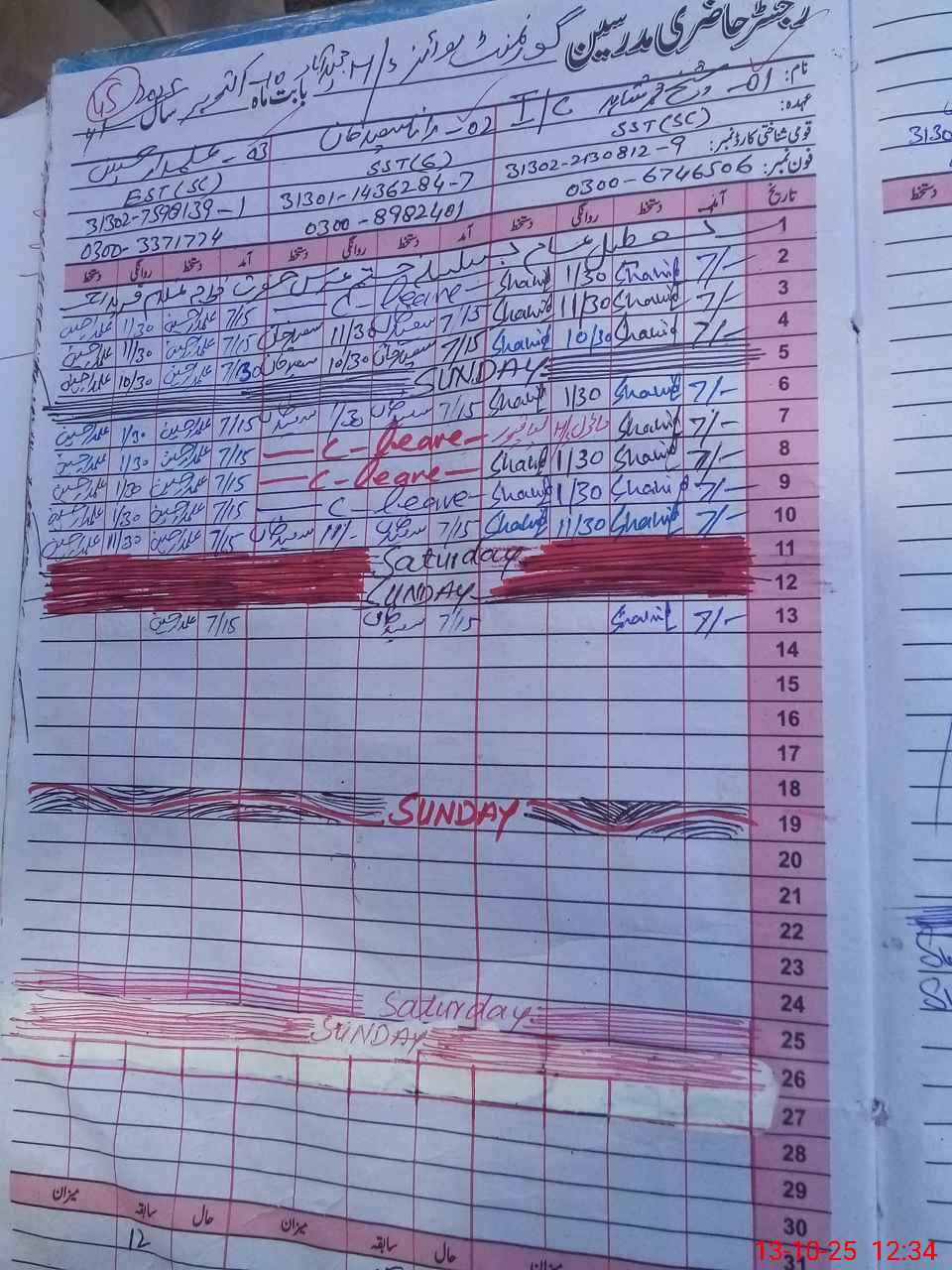 | Name: SH**** MU**** SH**** Designation: (School Headmaster's/Headmistress's) SST (INCHARGE HEADMASTER) Phone/Cell Number: 03**** |