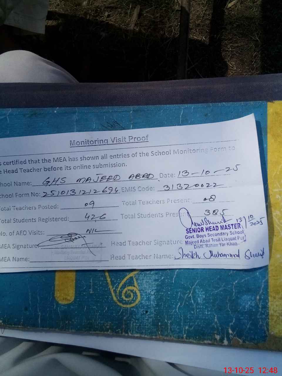 | EMIS Code: 31320022 | Name of School: GHS MAJEED ABAD | |||
