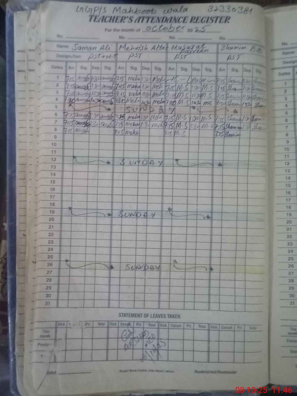 | Name: SA**** AL**** Designation: (School Headmaster's/Headmistress's) PST Phone/Cell Number: 03**** |