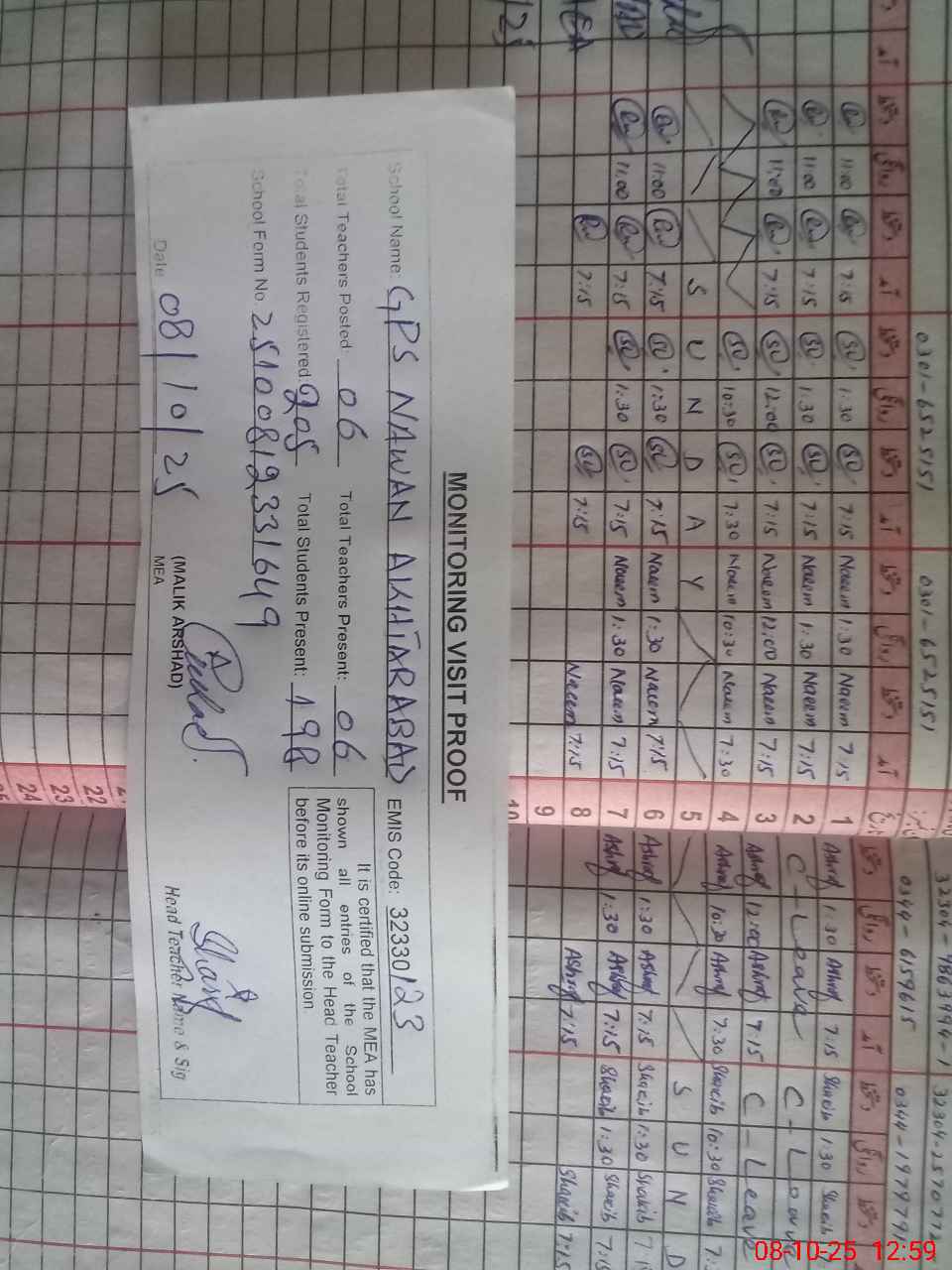 | EMIS Code: 32330123 | Name of School: GPS NAWAN AKHTAR ABAD | |||
