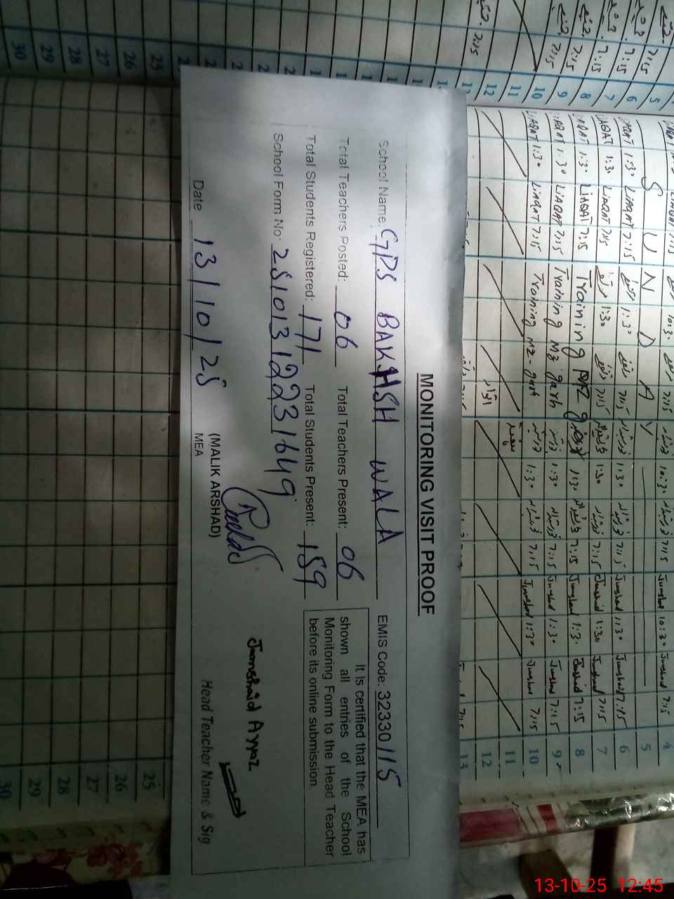 | EMIS Code: 32330115 | Name of School: GPS BAKHSH WALA | |||