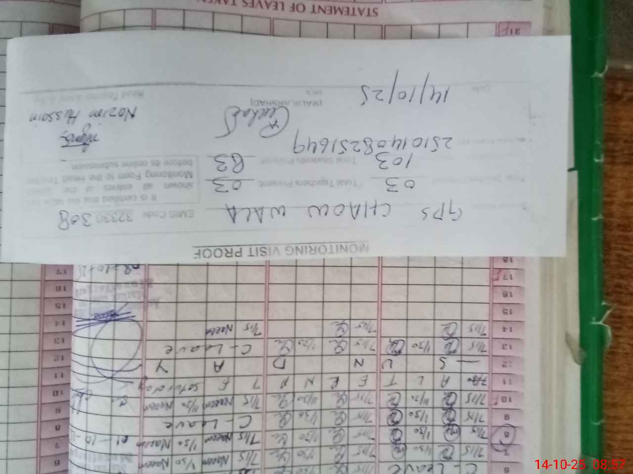 | EMIS Code: 32330308 | Name of School: GPS CHAOW WALA | |||