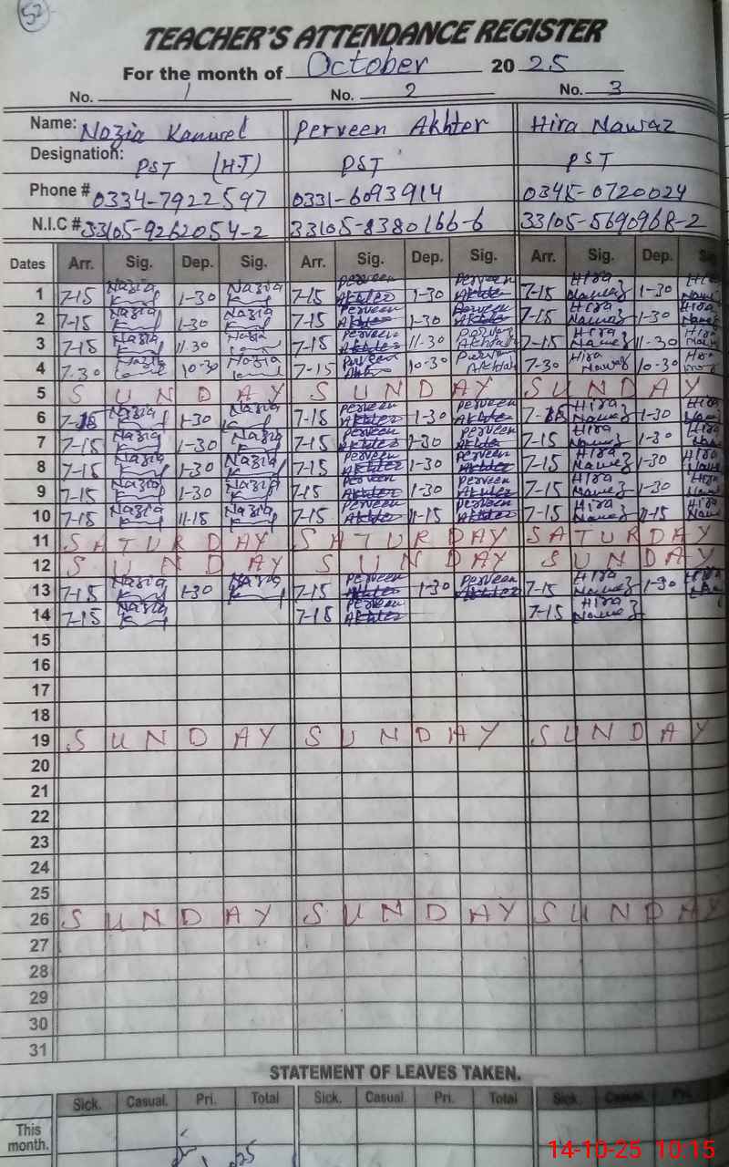 | Name: NA**** KA**** Designation: (School Headmaster's/Headmistress's) PST Phone/Cell Number: 03**** |