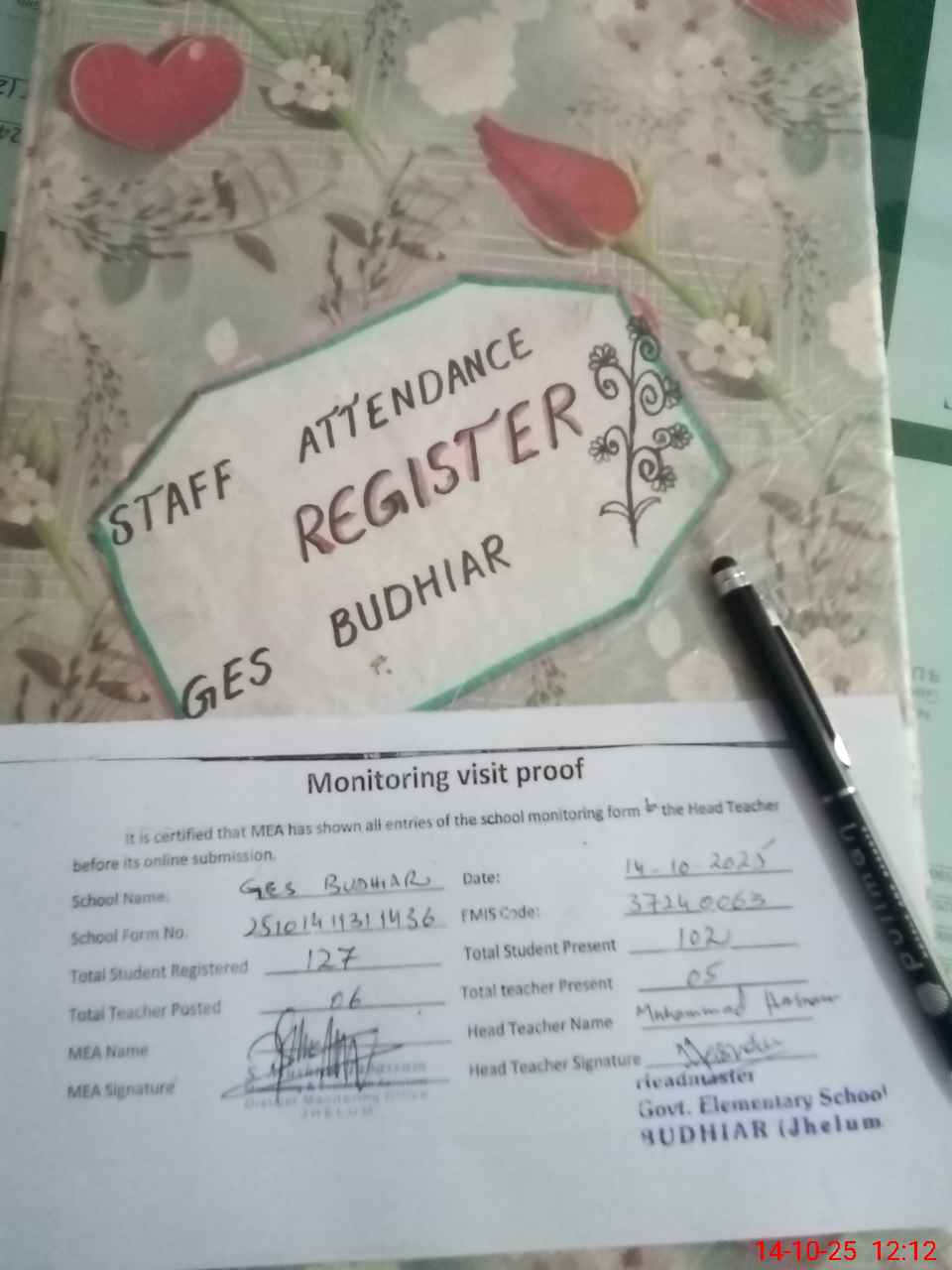 | Attendance Register | Head Teacher | MEA with School | Visit Proof |