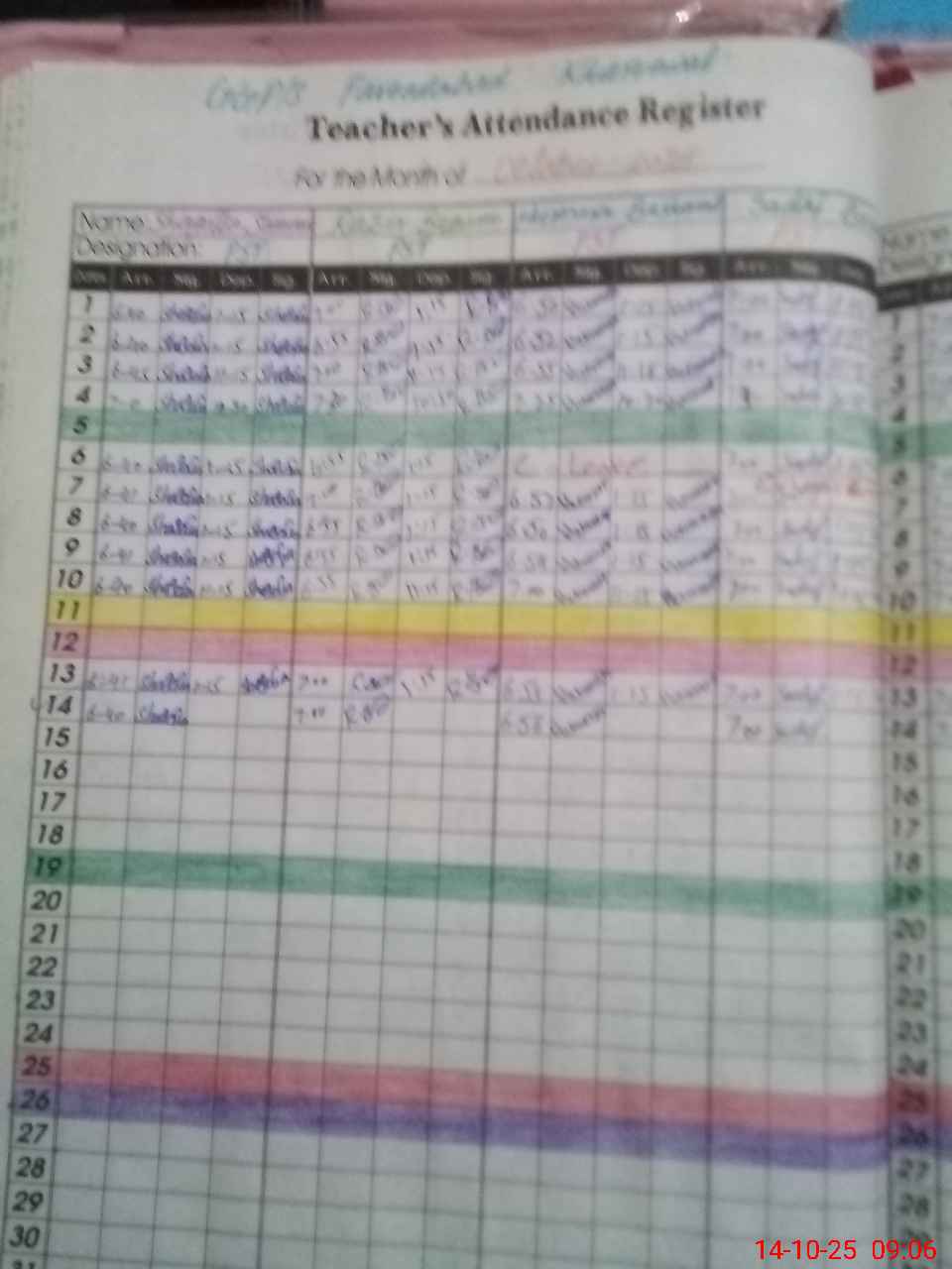 | CNIC | Full Name | Designation | R/C | Absence During Last Calender Month |