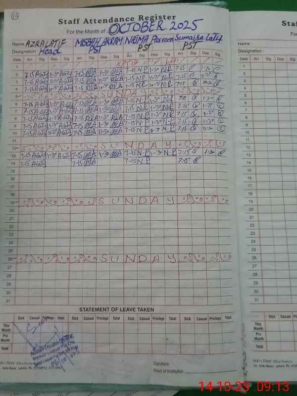 | Name: AZ**** LA**** Designation: (School Headmaster's/Headmistress's) PST/PTC/JV Phone/Cell Number: 03**** |